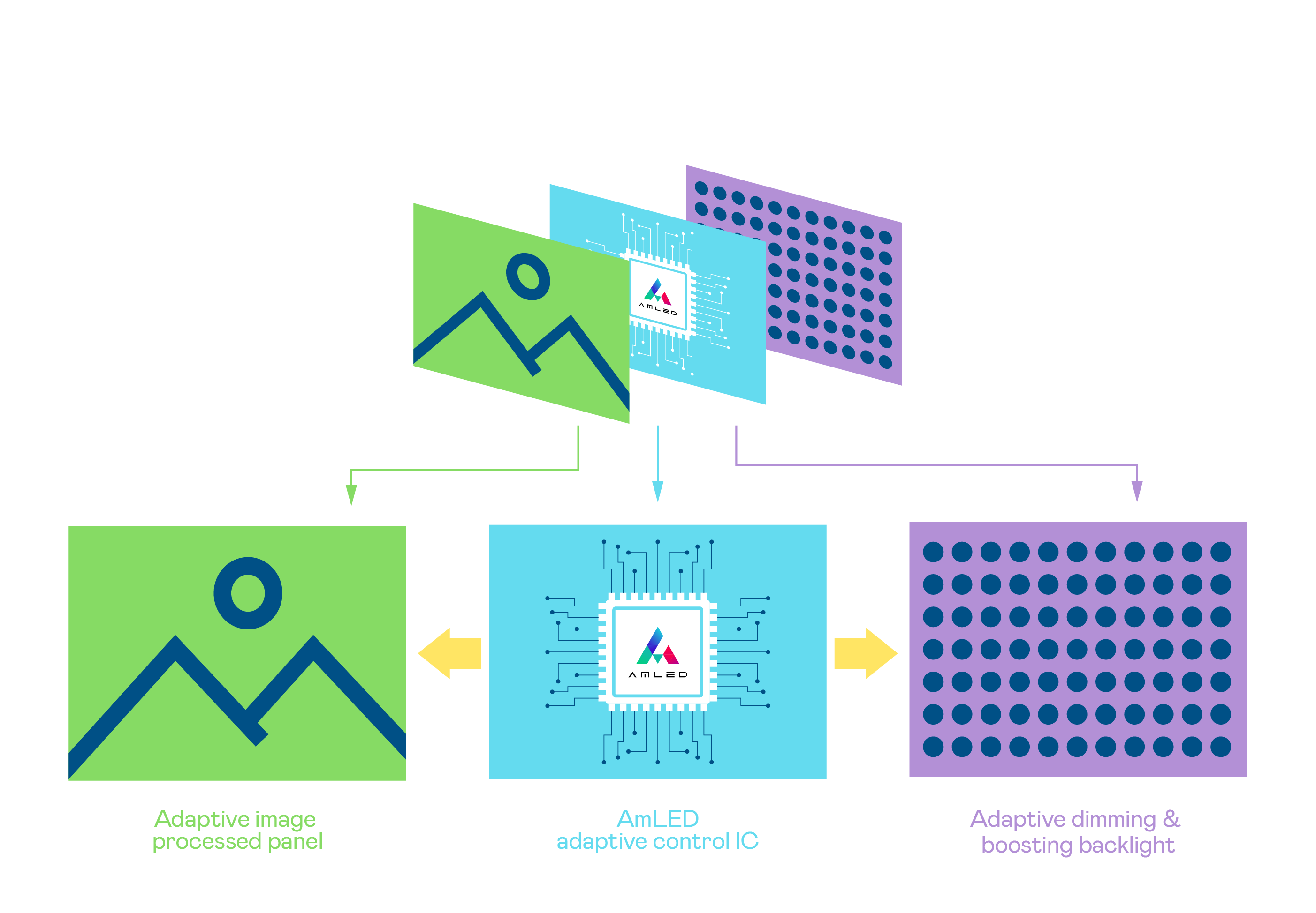 AmLED 具备更省电与低蓝光特性。与一般的 LED 背光显示技术相比,由于 AmLED 常时处于局部调光状态,其功耗仅有前者的 50% 左右,同时 AmLED 还具备低蓝光特性,满足长时间使用的护眼需求。
